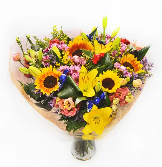 זר מתוק פרלינים בקשת הצבעים הוא זר צבעוני עם פרחים בכל הצבעים וביניהם טעימות מתוקות.